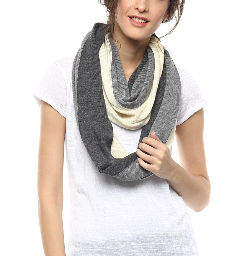 Your seasonal sidekick. Exceptionally soft and warm. this midweight. 100% merino wool knitted infinity scarf orbits the neckline in a chic combination of color and pattern.
